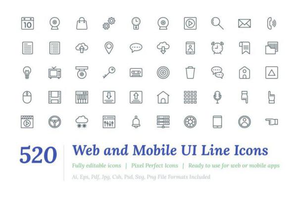 图穷联素材库 » 520个网络和移动用户界面图标 520 Web and Mobile UI Li