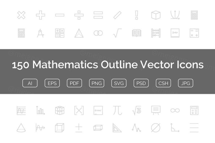 图穷联素材库 » 150数学相关的图标 150 Mathematics Outline Vecto