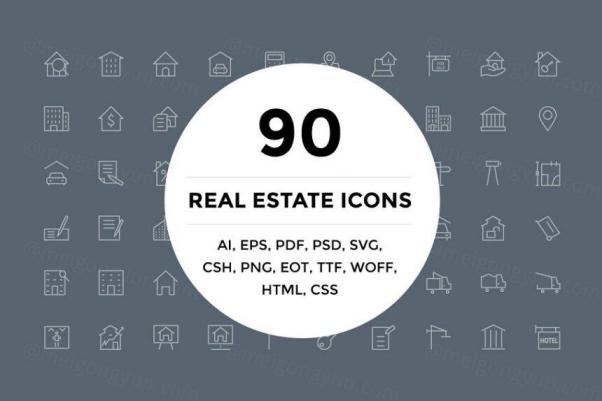 图穷联素材库 » 90个精美的房地产图标 90 Real Estate Icons