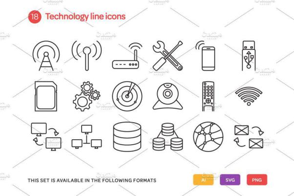 图穷联素材库 » 技术线型图标 Technology Line Icons Set