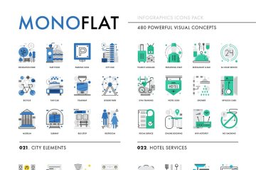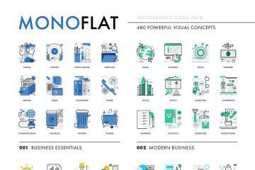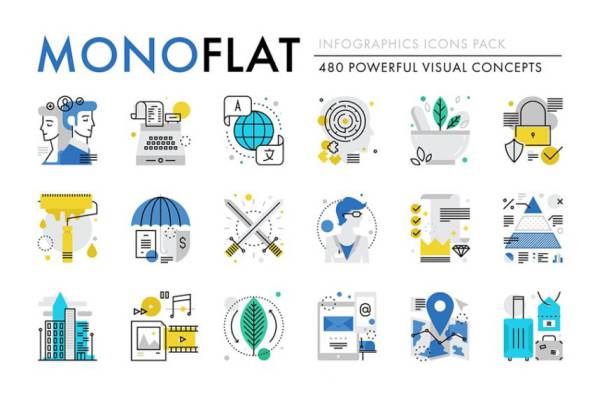图穷联素材库 » 科技互联网创意图表图标 Monoflat Infographics Icons
