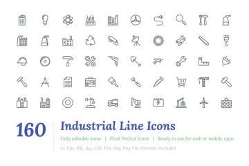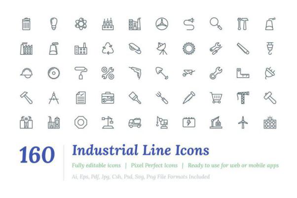 图穷联素材库 » 工业线型图标 160 Industrial Line Icons