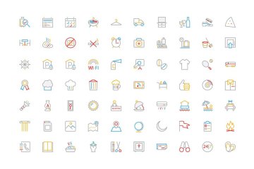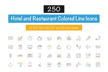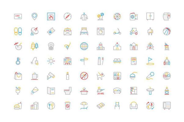 图穷联素材库 » 250个酒店相关图标 250 Hotel Colored Line Icons