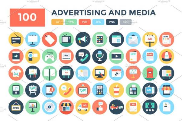 100扁平化广告和媒体图标 100 Flat Advertising and M