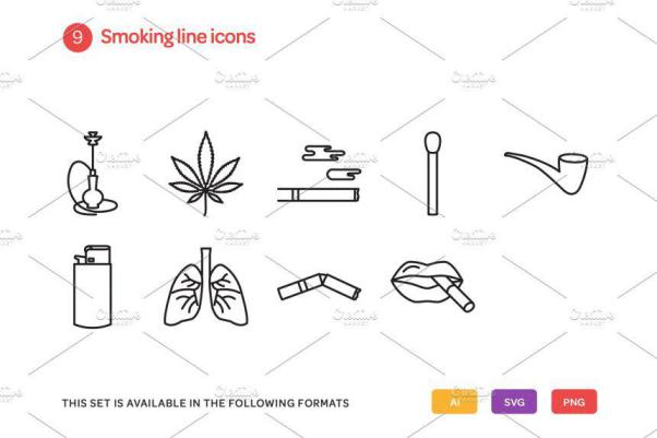图穷联素材库 » 吸烟相关的线型图标 Smoking Line Icons Set