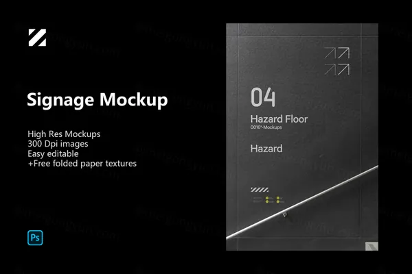 图穷联素材库 » 高端扶梯黑色墙面路牌指示牌品牌导视系统设计贴图展示样机模板 Signage Mockup