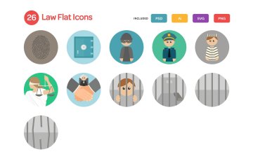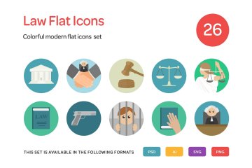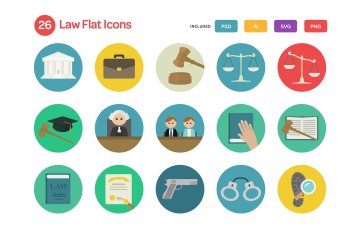 图穷联素材库 » 法律风格的扁平化图标 Law Flat Icons Set