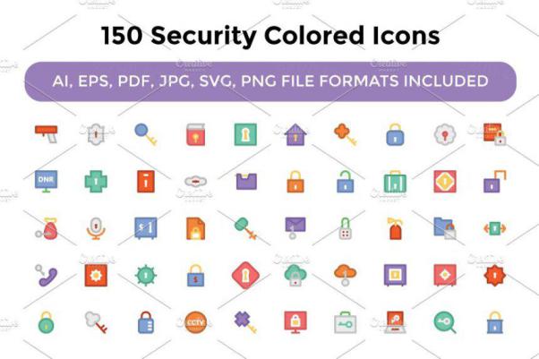 图穷联素材库 » 安全彩色图标 150 Security Colored Icons