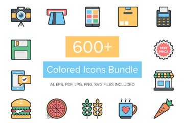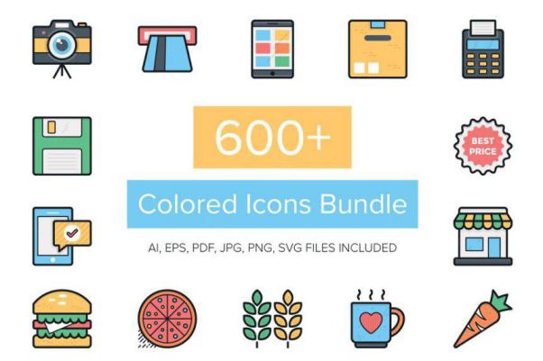 常见物品彩色扁平化图标 600 Colored Icons Bundle
