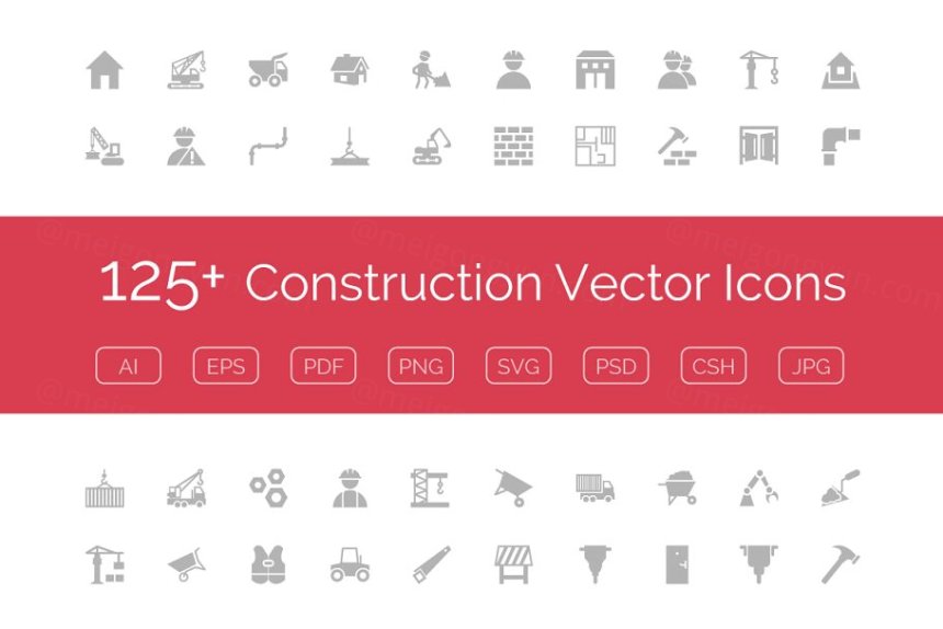 图穷联素材库 » 125 建筑主题图标 125 Construction Vector Icon