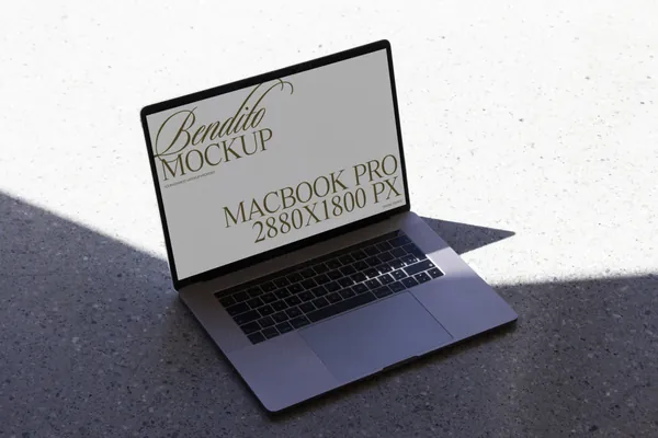户外实拍高级阴影笔记本电脑场景贴图展示网页设计提案样机模板 Macbook Pro 01-1