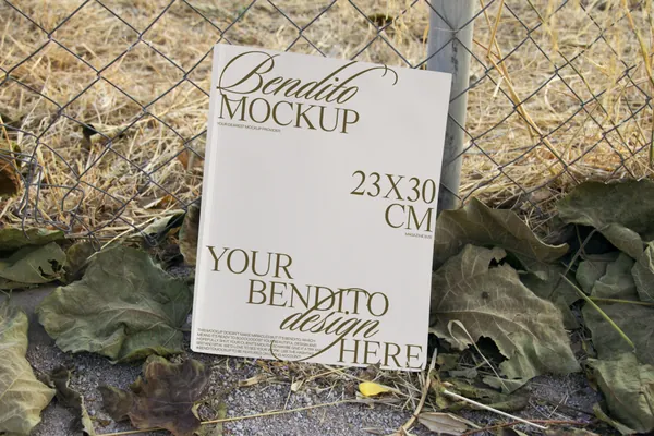 高端户外实拍掉落地上的杂志画册封面设计提案贴图展示样机模板 Magazine 02