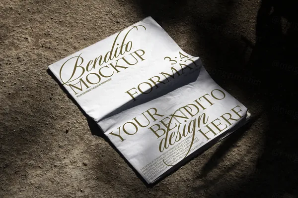 图穷联素材库 » 高端户外实拍地面上的报纸排版设计提案贴图展示样机模板 Newspaper 01