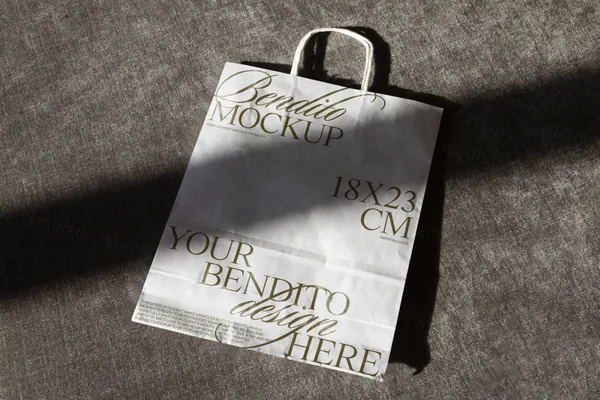 图穷联素材库 » 高端户外实拍放地上的纸袋手提袋包装设计提案贴图展示样机模板 Paper Bag 03