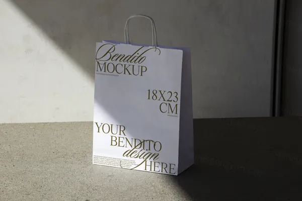 图穷联素材库 » 高端户外实拍放地上的纸袋手提袋包装设计提案贴图展示样机模板 Paper Bag 04
