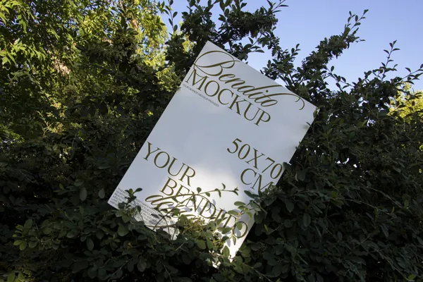 图穷联素材库 » 高端户外实拍掉落树梢的宣传单海报设计提案贴图展示样机模板 Poster 06