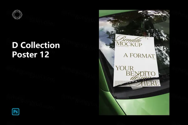 图穷联素材库 » 高端户外实拍夹在汽车雨刷器的宣传单海报设计提案贴图展示样机模板 Poster 12
