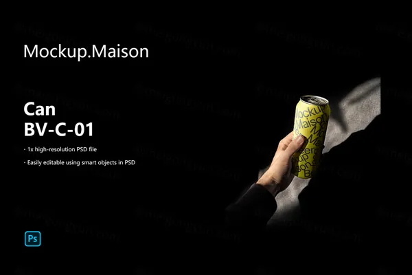 此 Can 模型可作为分层 PSD 文件使用,并且易于定制。您可以通过嵌入式智能对象插入您的设计。