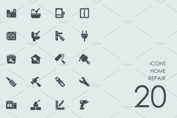 图穷联素材库 » 家庭维修相关图标 Home repair icons