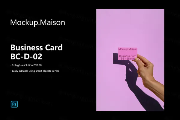 图穷联素材库 » 高质量手持商务名片品牌设计提案贴图展示样机模板 Business Card BC-D-02