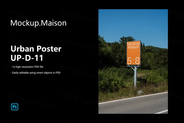 此城市海报样机可作为分层 PSD 文件使用,并且易于定制。您可以通过嵌入式智能对象插入您的设计。