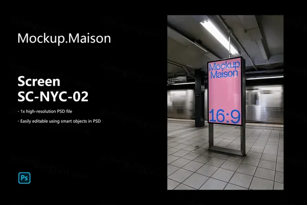 图穷联素材库 » 高质量纽约都市地下通道地铁灯箱广告牌海报设计贴图展示样机模板 Screen SC NYC 02
