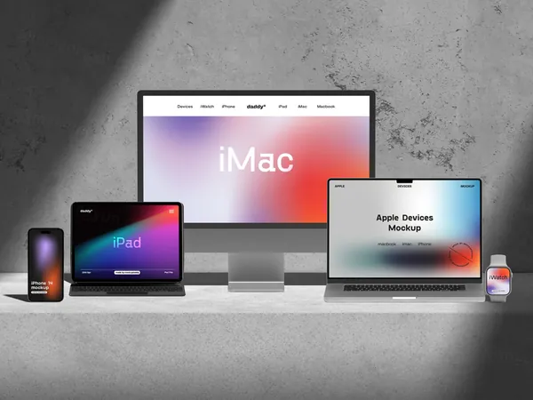 高质量CG建模工业冷淡风苹果全家桶场景展示UI贴图样机模板素材 Apple Devices Mockups-4