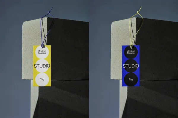 图穷联素材库 » 高质量工业砖块创意场景服装吊牌设计提案展示样机模板 Hang Tag HT-BRK-02