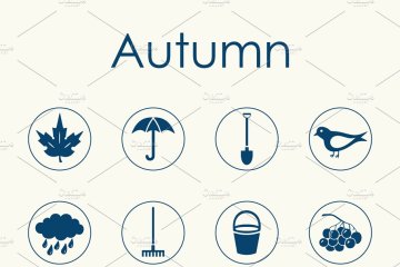 图穷联素材库 » 16个关于秋天的简单图标 16 Autumn simple icons