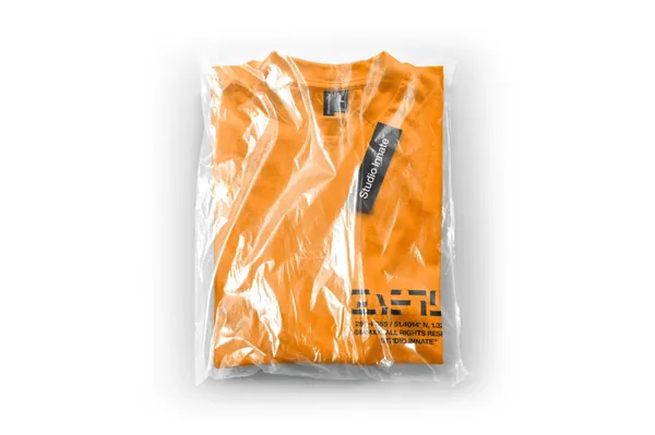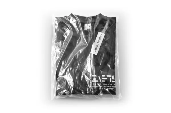 图穷联素材库 » 高质量透明塑料袋包装潮牌T恤设计贴图展示样机模板 Plastic Apparel Bag