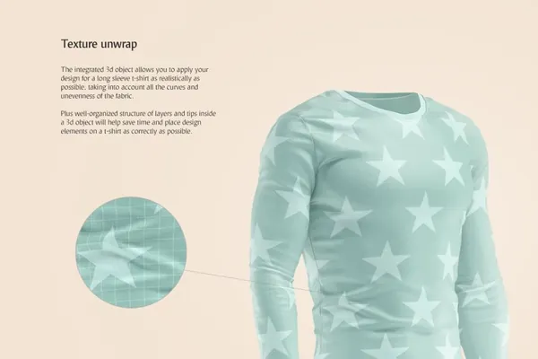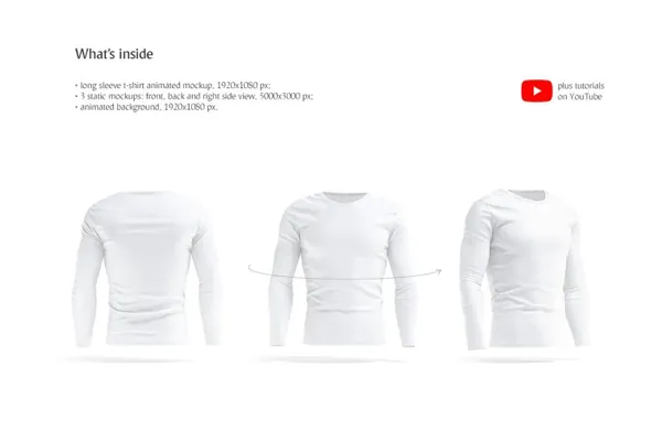 图穷联素材库 » 男士紧身长袖T恤360度动态贴图展示服装设计提案样机模板 Long Sleeve T-shirt Mockup