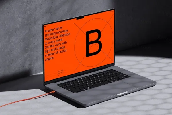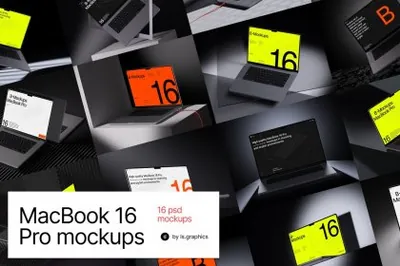 图穷联素材库 » 高质量苹果笔记本创意场景网页设计Web贴图展示样机模板 B - MacBook 16 Pro Mockups