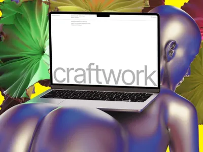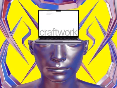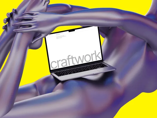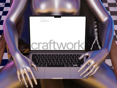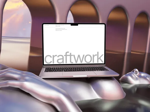 图穷联素材库 » 未来感镀铬金属模特笔记本场景网页设计提案样机模板 Liquid MacBook Air M2 Mockups