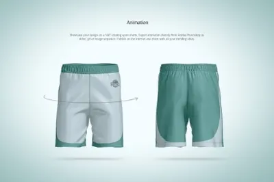 图穷联素材库 » 男士运动短裤360度动态贴图展示设计提案样机模板 Sport Shorts Animated Mockup