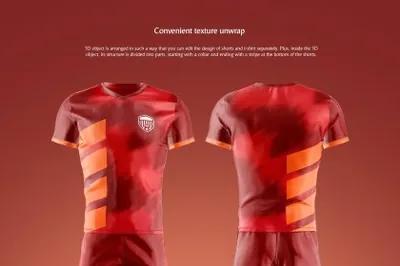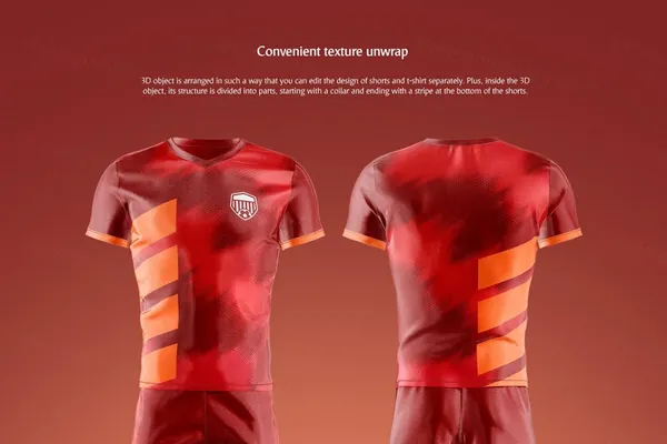 图穷联素材库 » 男士运动球服360度动态贴图展示设计提案样机模板 Soccer Uniform Animated Mockup