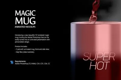 推出适用于 Adobe Photoshop 的全新精美 3D 渲染魔术杯模型,可轻松转换为具有个性化设计的动画演示。