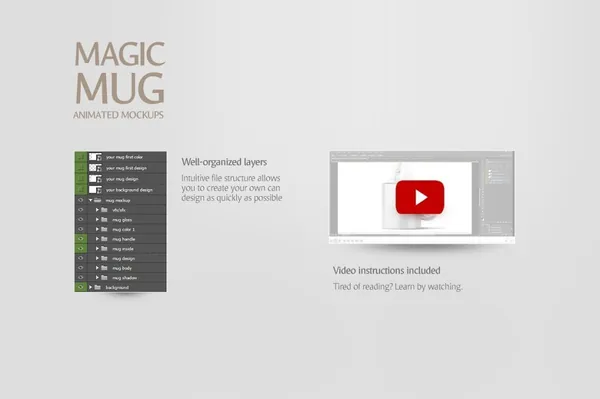 图穷联素材库 » 遇热变色马克杯茶杯360度动态贴图展示设计提案样机模板 Magic Mug Animated Mockup