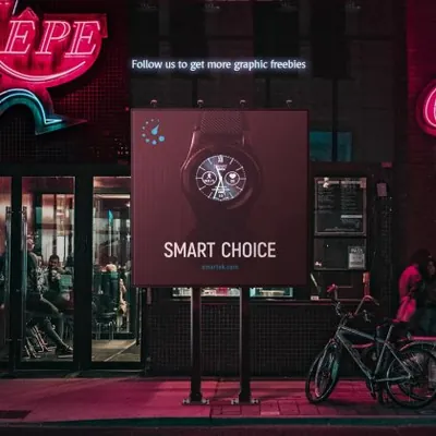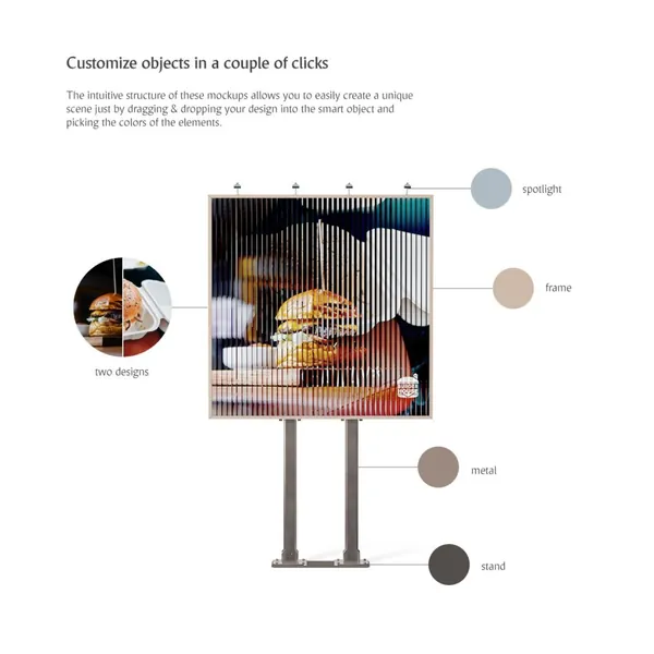 有可定制的设计、背景和广告牌元素的颜色。这些模型非常适合印刷设计师和户外广告设计师。
