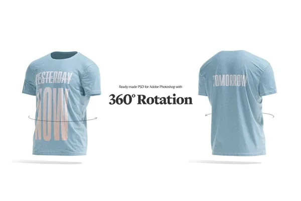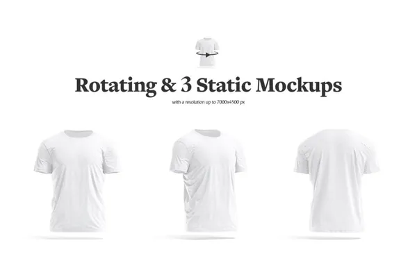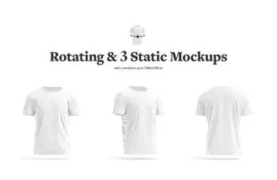 超逼真的 360° T 恤模型加上动画背景和 3 个不同视角的静态模型。添加您的时尚设计、自定义灯光效果并保存 4k 视频或 gif 动画。