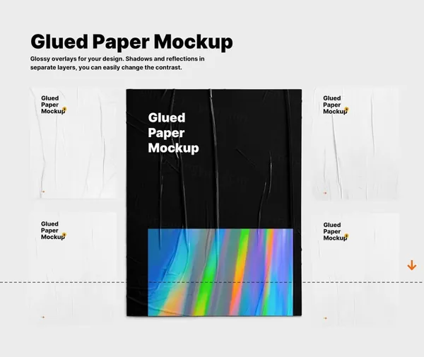5/ 胶合纸模型 光泽覆盖为您的设计。阴影和反射位于不同的图层中,您可以轻松更改对比度。