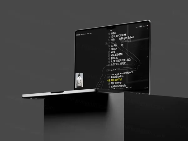 图穷联素材库 » 潮流三维渲染苹果笔记本场景Web网页设计界面展示样机模板 MacBook Pro 14 Mockups V1