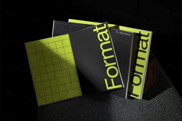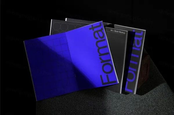 图穷联素材库 » 高端摄影实拍书籍封面排版设计提案贴图展示样机模板素材 A4 Book Mockup