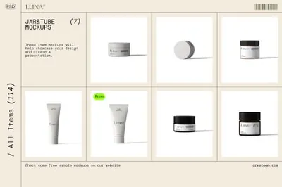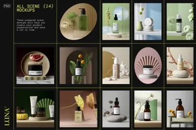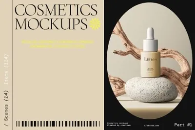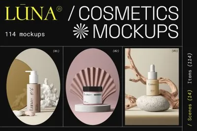 图穷联素材库 » 美白防晒乳霜乳液美容化妆品品牌包装设计贴图展示样机模板 Cosmetics mockups Part 1