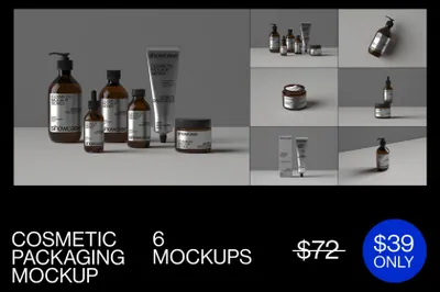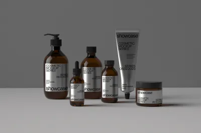 极简主义美容化妆品品牌包装设计贴图展示样机模板套装 Cosmetic Packaging Bundle