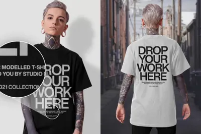 图穷联素材库 » 潮流短袖T恤欧美女模特展示服装设计提案样机模板 Modelled T-Shirt Mockup