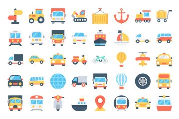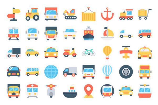 彩色的扁平化交通工具图标 100 Flat Transport Icons