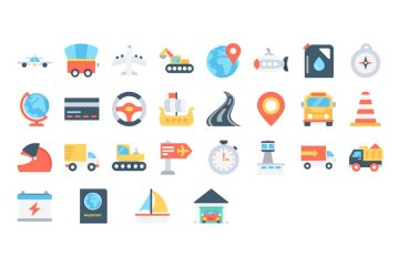 图穷联素材库 » 彩色的扁平化交通工具图标 100 Flat Transport Icons