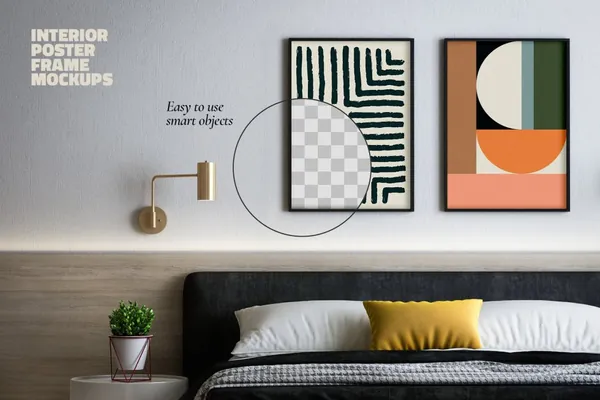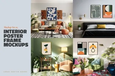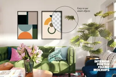 现代潮流室内家居陈设艺术画框贴图展示样机模板 Poster Mockup Set Modern Interior