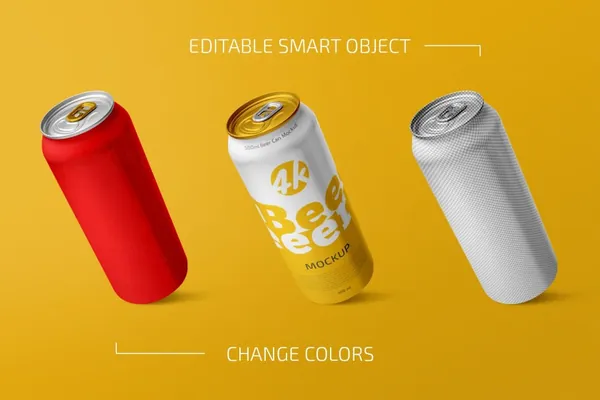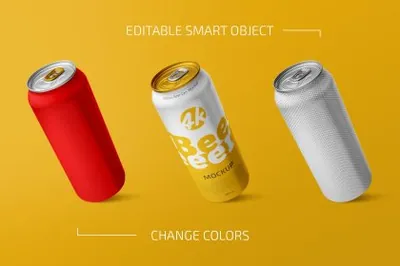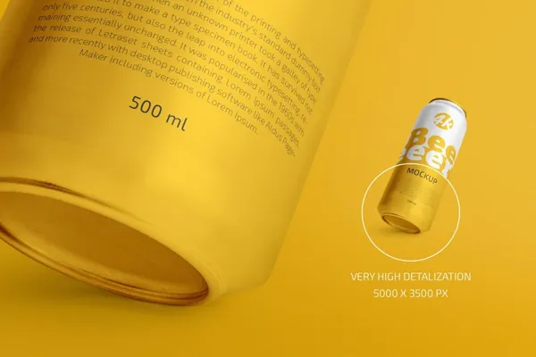 图穷联素材库 » 高质量啤酒易拉罐碳酸饮料包装品牌设计贴图展示样机模板 500ml Beer Can Mockup Set