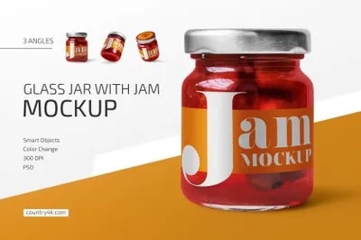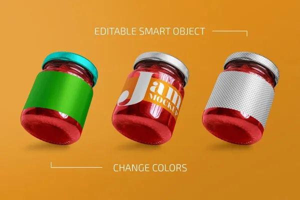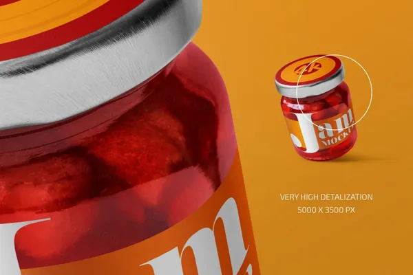 图穷联素材库 » 果酱食品罐头包装设计贴图样机模板 Glass Jar with Jam Mockup Set